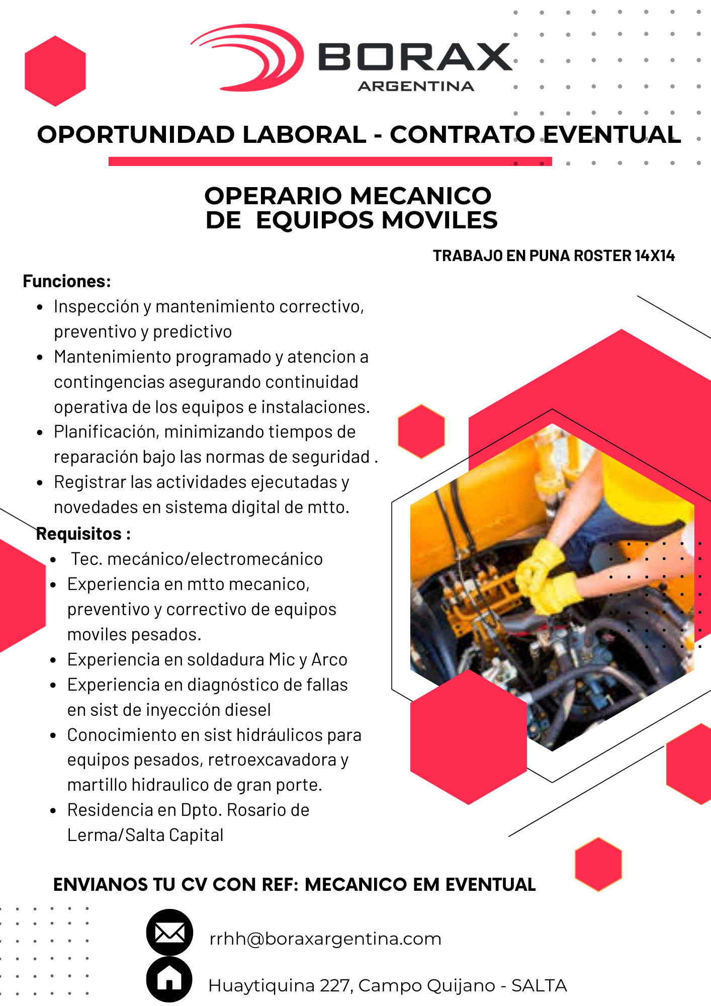 *Experiencia en mtto mecanico, preventivo y correctivo de equipos moviles pesados.
