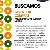 Profesional de ingeniería, administración o área relacionadas – Experiencia en gerenciamiento de áreas de compras industriales y operativas – Inglés avanzado (excluyente) – Excelente manejo de SAP (enseñarlo y controlarlo) – Habilidades de negociación y contratos – Buen manejo de equipos de trabajo – Residir en Salta (disponibilidad de relocalización)