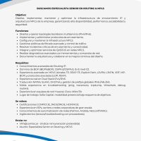 Especialista Senior en Routing & MPLS OTROS Salta 21 agosto, 2025 Tiempo completo Plazo de solicitud cerrado. Descripción del trabajo Diseñar, implementar, mantener y optimizar la infraestructura de enrutamiento IP y arquitectura MPLS de la empresa, garantizando alta disponibilidad, performance, escalabilidad y seguridad. Compartir esta publicación Facebook Twitter Linkedin Fotos Trabajos Relacionados Referente Comercial Hunter OTROS Salta Tiempo completo Operadores de despacho de Salmuera – Proyecto Mariana OTROS Tiempo completo Encargado de Nutricion OTROS Tiempo completo Operario de Logística OTROS Campo Quijano Tiempo completo