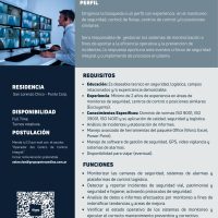 * Monitorizar las camaras de seguridad, sistemas de alarmas y plataformas de control logistico.